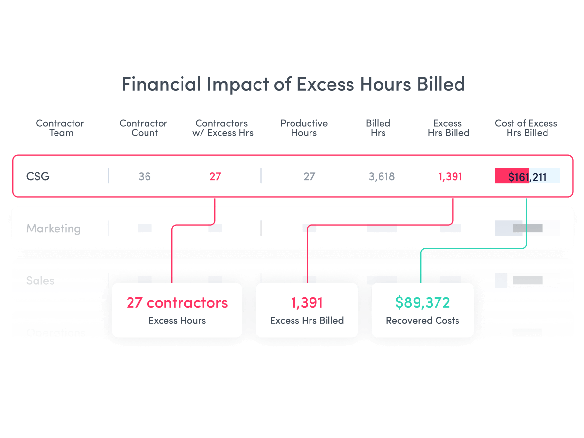 - Verify productive hours to billed hours across contractors, teams and vendors