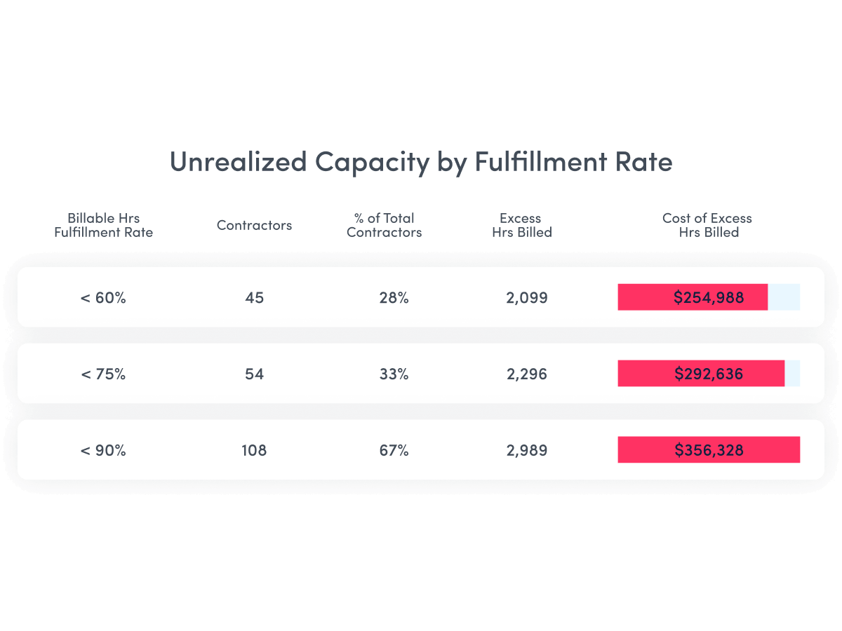 - Optimize contractor value with a clear view of unrealized capacity by fulfillment rate