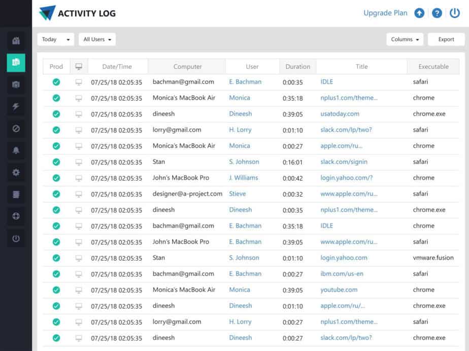 ActivTrak’s Detailed Activity Log