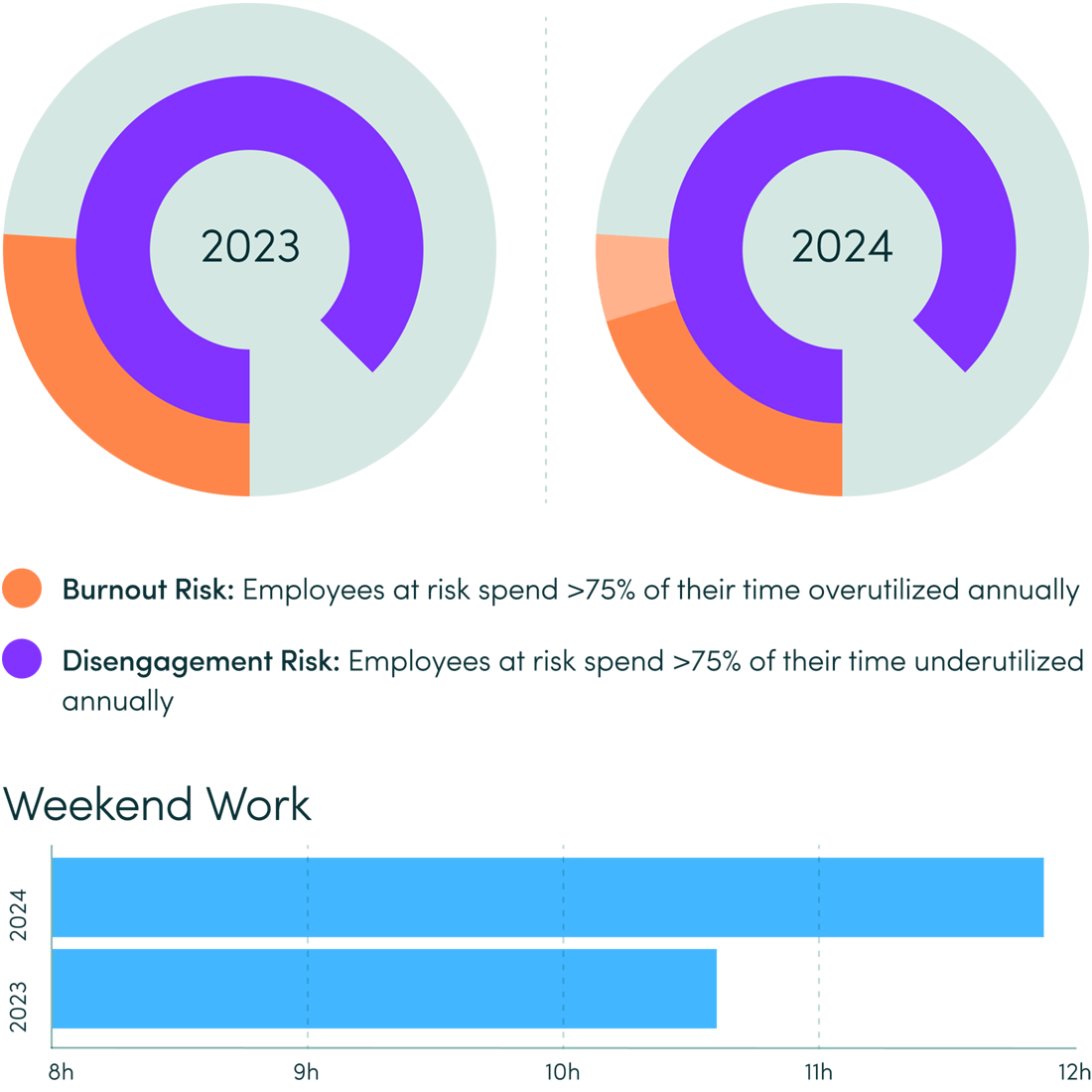 - Compared to 2023, this includes a 21% drop in overutilized employees, and a 14% drop in underutilized employees.