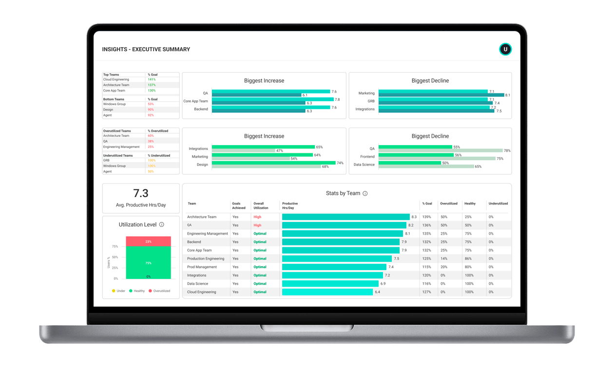 Analyze work activity data across your organization to improve productivity, engagement and operational efficiency. Understand workforce utilization, track AI adoption and optimize human+AI impact to get the most from your workforce investments.