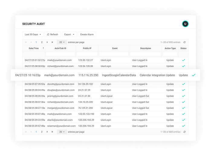 ActivTrak upholds the highest standards of data security, privacy and regulatory compliance. Our platform is designed to meet the needs of modern enterprises — balancing workforce visibility with employee rights and ethical use. We maintain rigorous safeguards, follow global compliance frameworks and provide full transparency to help customers meet their own governance requirements with confidence.