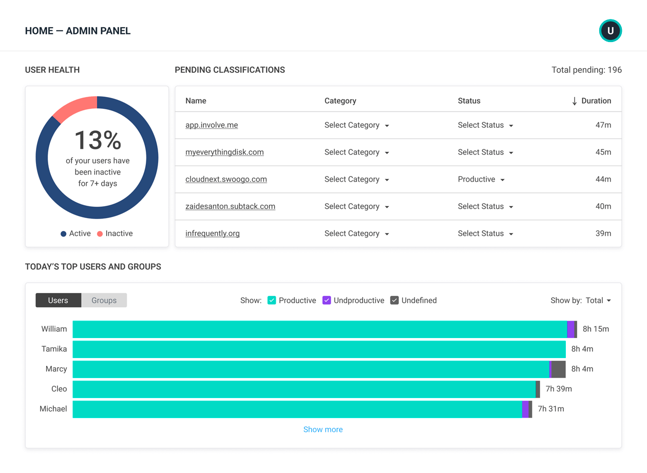 - Connect the most used unclassified activities to their productivity status with just a few clicks
